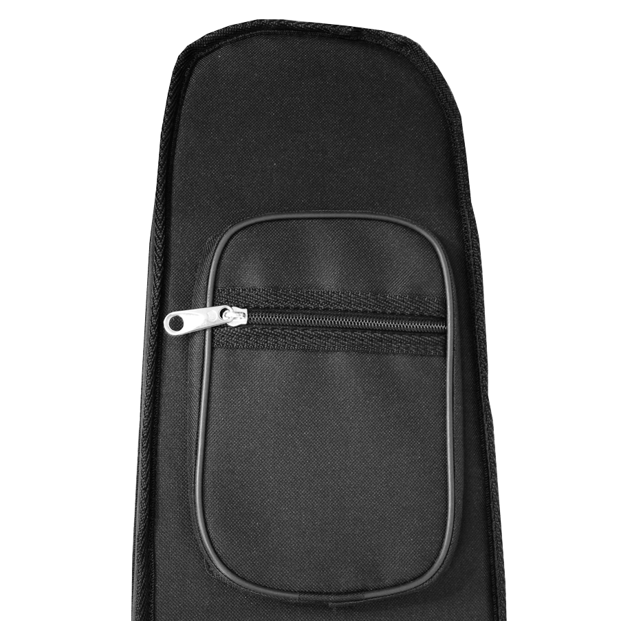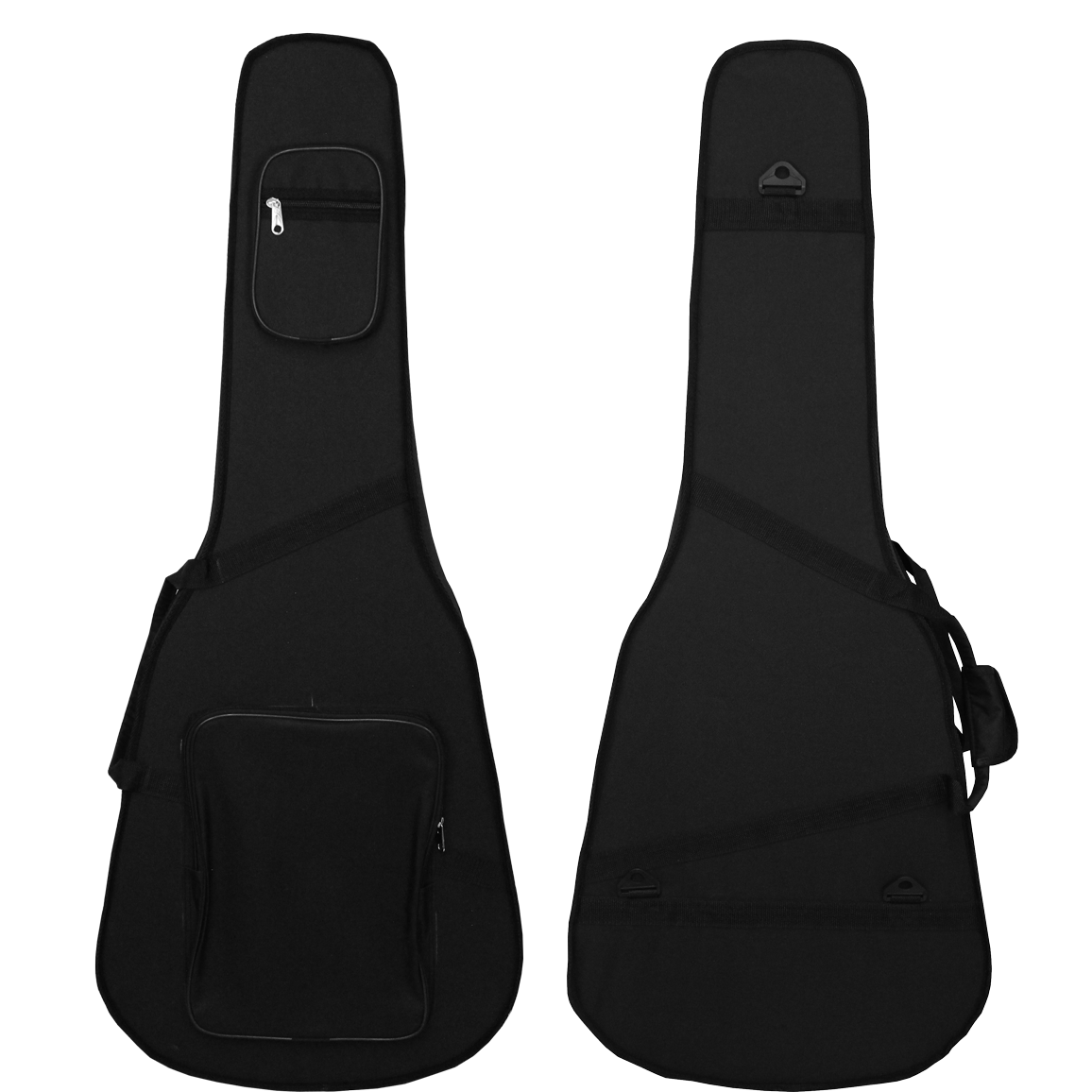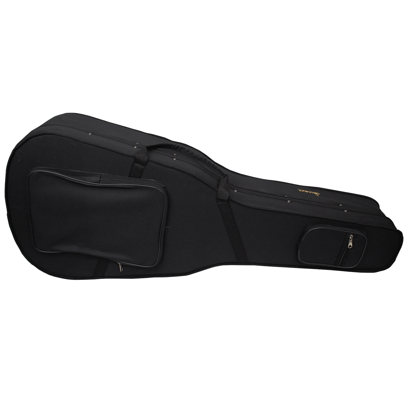 Soft case para violão com revestimento em nylon super-reforçado, acabamento sólido interno de poliestireno (EPS), compartimento externo para acessórios, bolso extra para partitura, alças de mão e ombro.