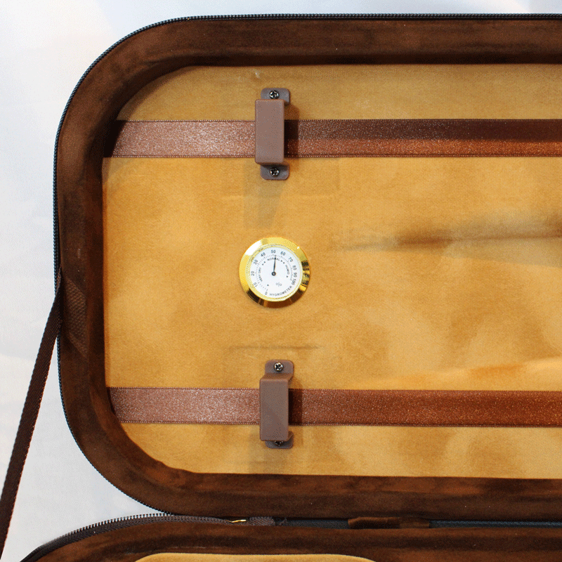 Estojo térmico retangular para Violino 4/4 Externo confeccionado em Oxford de alta qualidade. Acabamento interno veludo. Espaço para 2 arcos. Espaço para espaleira. Possui Higrômetro. Fechadura em metal com chave. Fundo extra almofadado para manter o instrumento suspenso. Compartimento interno para acessórios. Bolso externo para transportar partituras. Alças de mão e alças tipo…