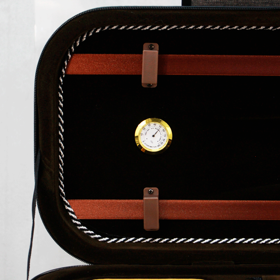 Estojo térmico retangular cinza luxo para Violino 4/4  Externo confeccionado em Oxford de alta qualidade. Acabamento interno aveludado. Espaço para 2 arcos.  Espaço para espaleira.  Possui Higrômetro. Fechadura em metal com chave. Fundo extra almofadado para manter o instrumento suspenso. Compartimento interno para acessórios. Bolso externo para transportar partituras.  Alças de mão e alças…