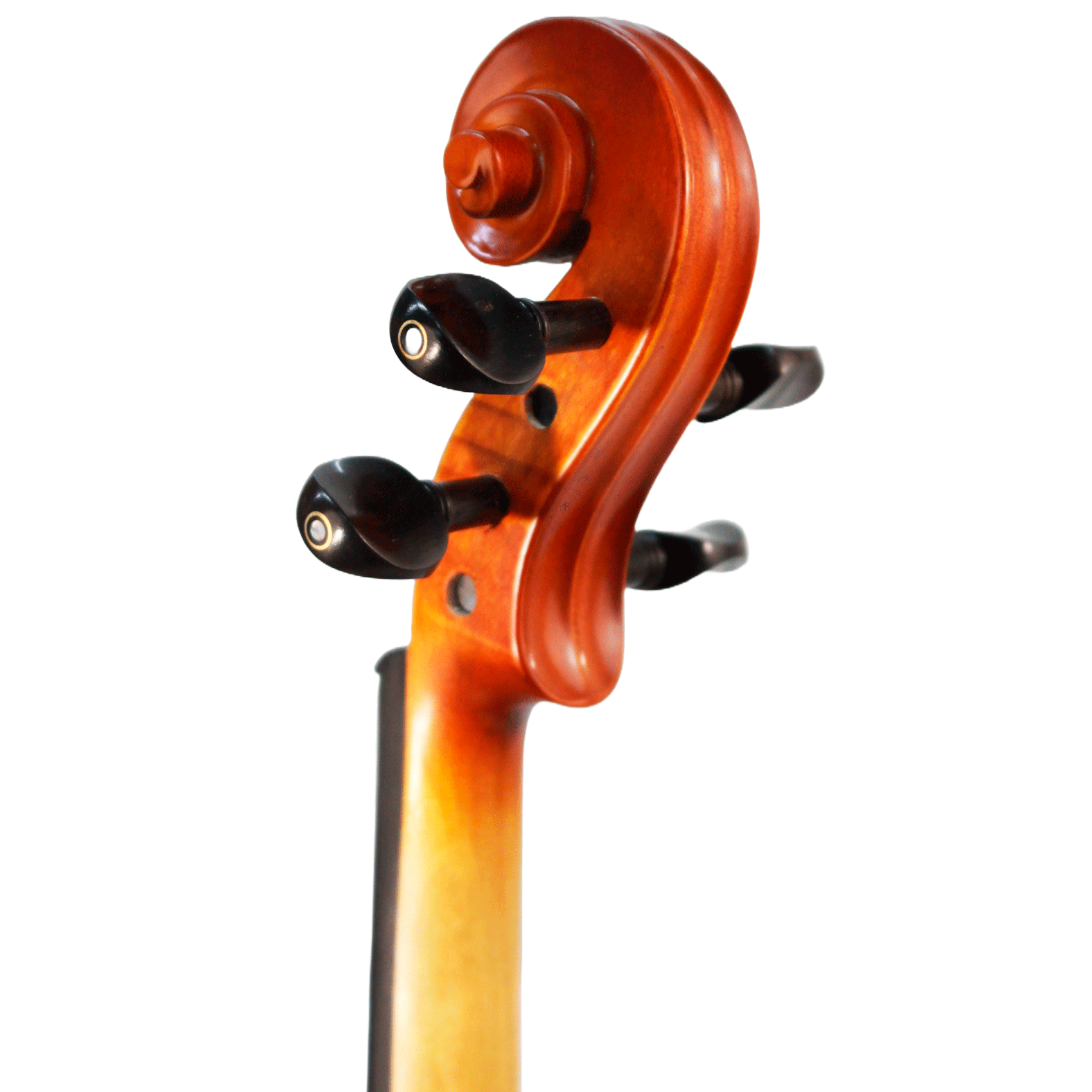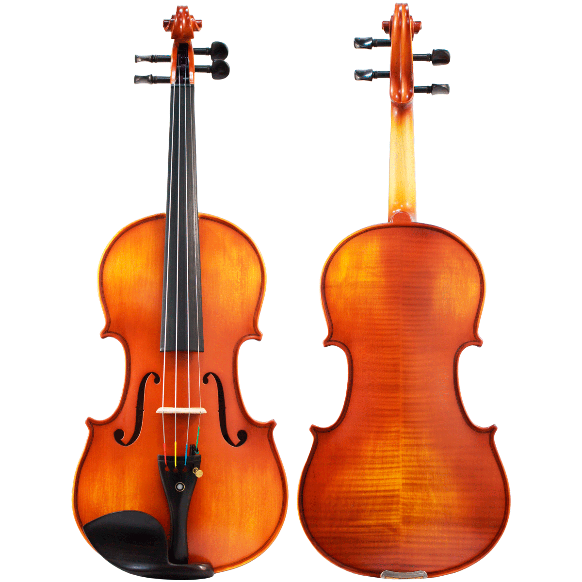Este violino de categoria intermediária é confeccionado com madeiras maciças de alta qualidade: