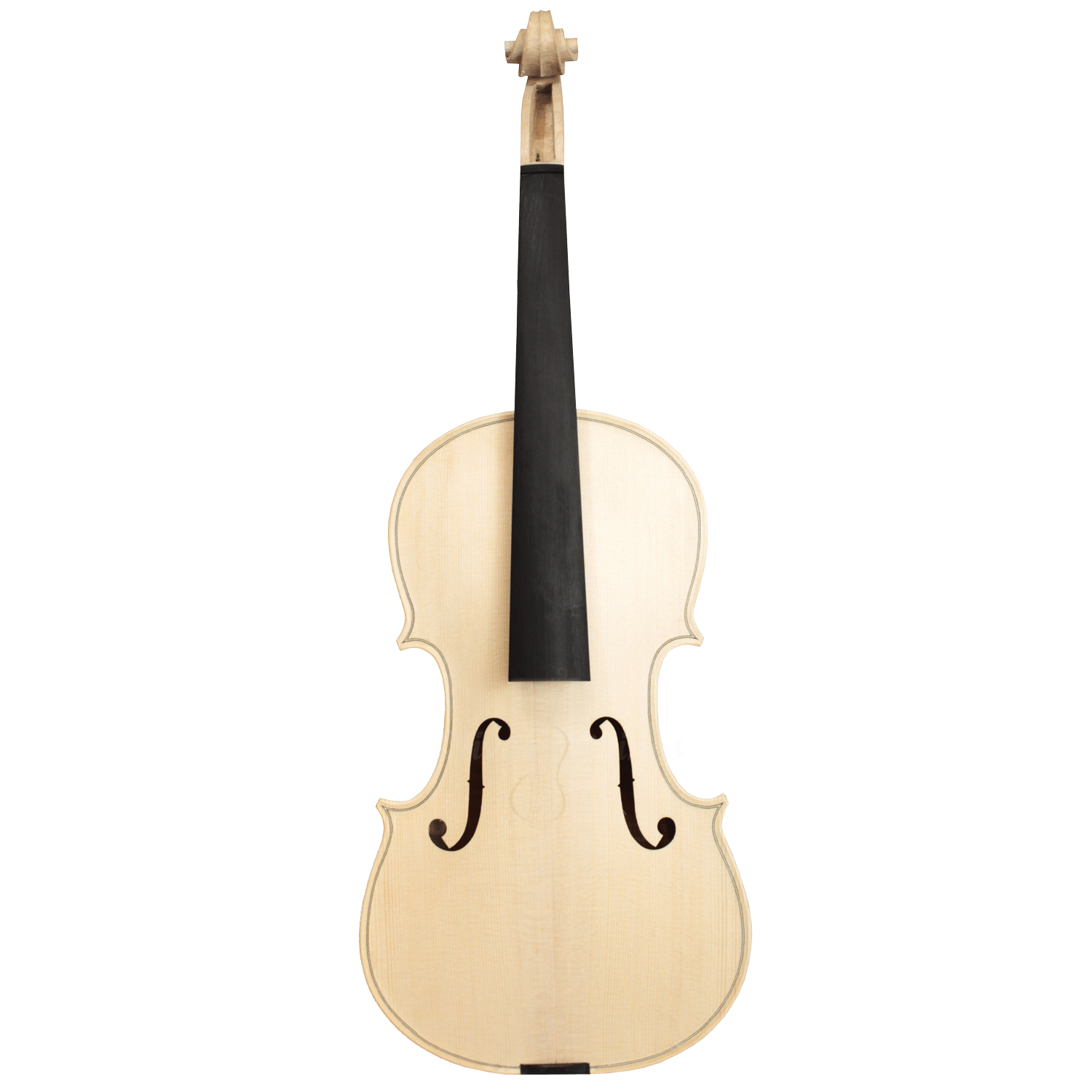 Branco inacabado de luthier fabricante de Violino para violino 4/4    *Feito em madeiras maciças de atiro e abeto *Filetado *Corpo sem verniz *Com o espelho em ébano *Tamanho disponível: 4/4 *Modelo: Stradivarius   OBS: Instrumento Bruto, requer acabamento e eventuais reparos