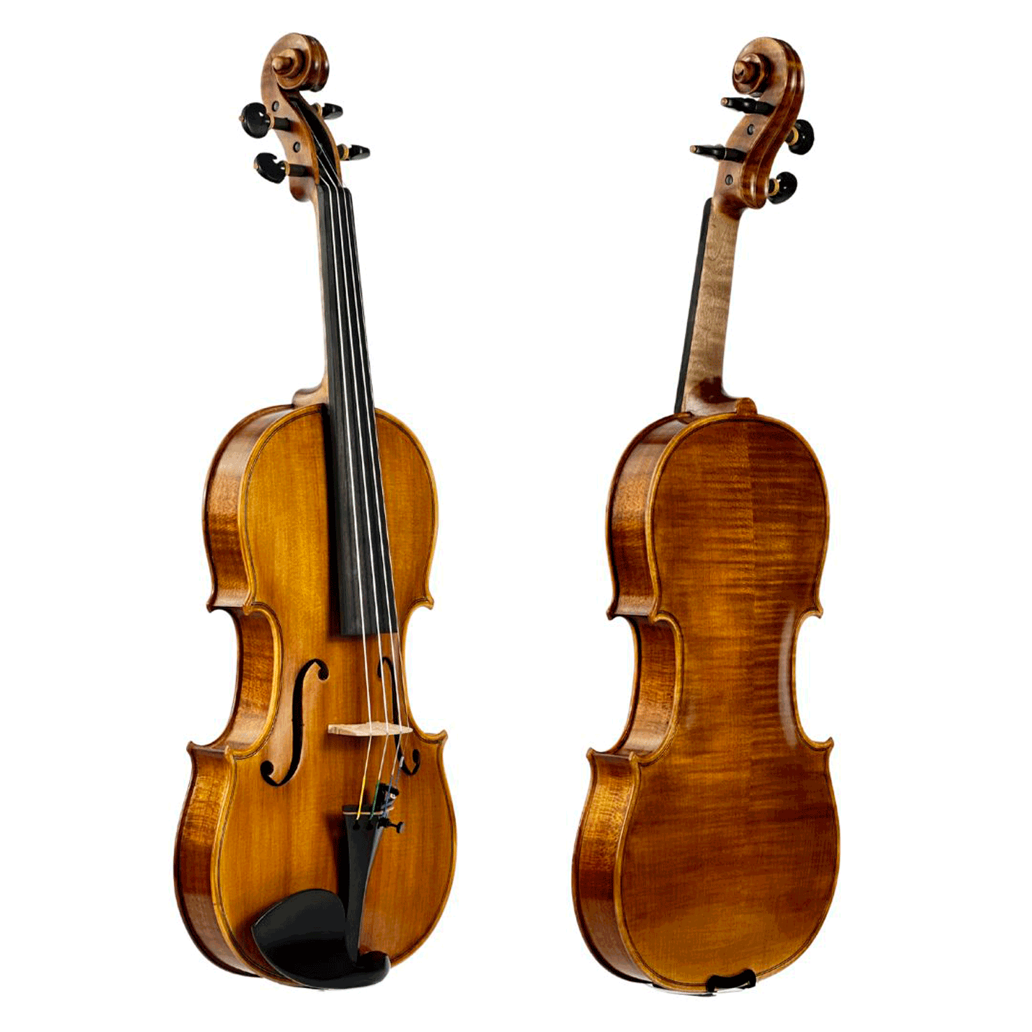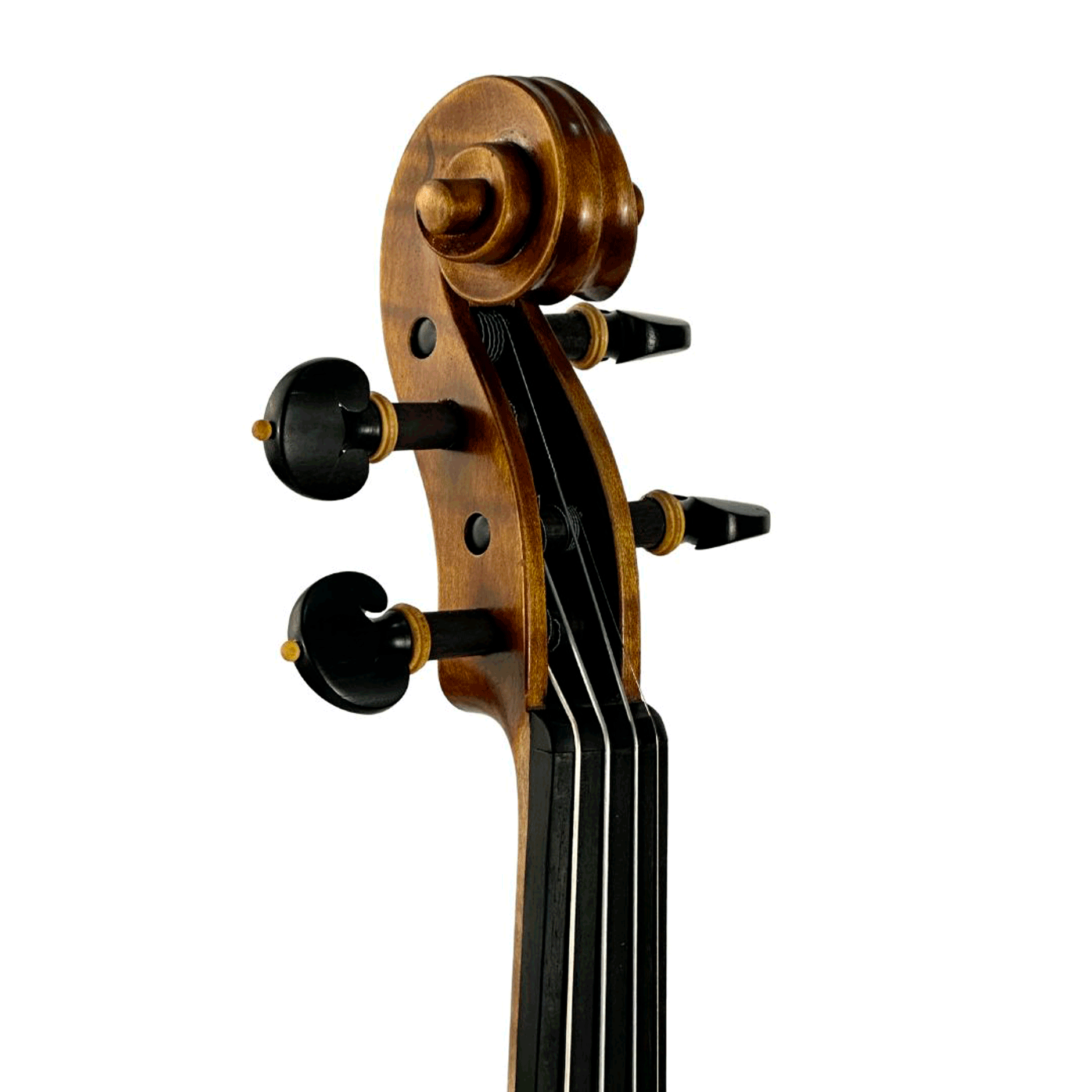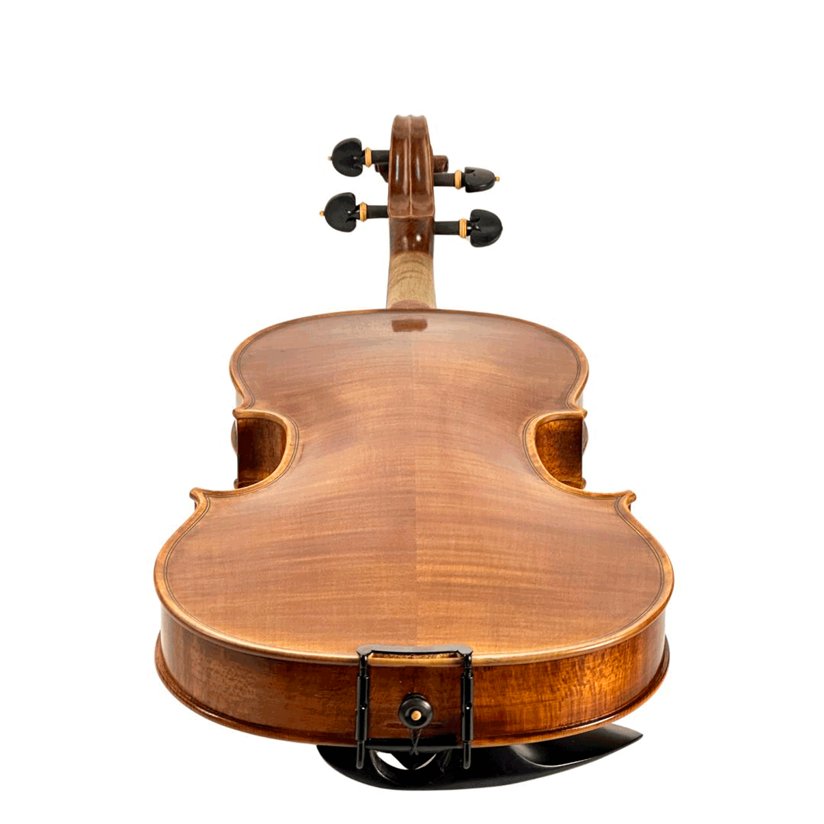 Cada Violino Atelier Silvero é uma expressão única de habilidade e paixão. Construído inteiramente à mão no Brasil em 2024, este violino artesanal utiliza madeiras maciças selecionadas – Atiro e Abeto – conhecidas por suas propriedades acústicas superiores, que garantem uma ressonância rica e profunda. O acabamento com verniz Goma Laca à base de álcool não só protege o instrumento, mas também realça a beleza natural dos veios da madeira, conferindo a cada peça uma identidade visual distinta e elegante. O modelo com fundo bipartido complementa a estrutura, contribuindo para a projeção sonora equilibrada e potente que define este violino feito à mão.