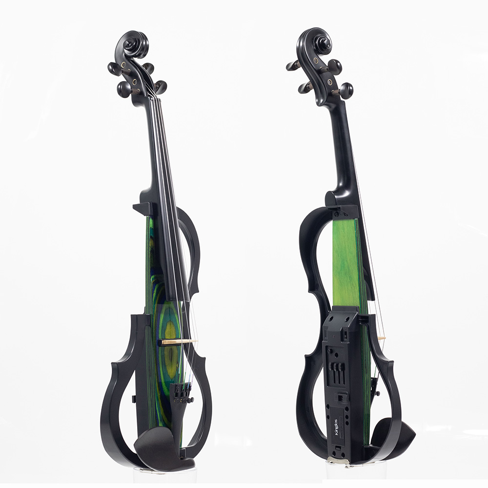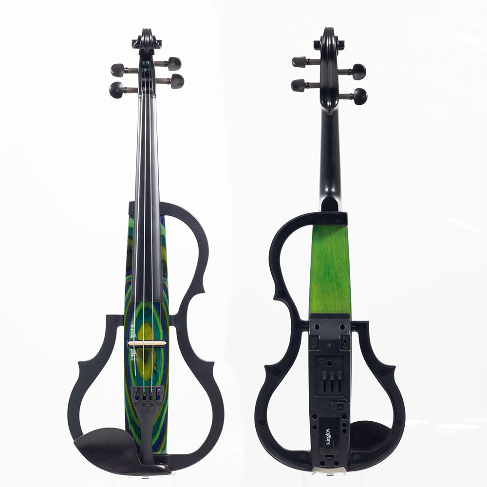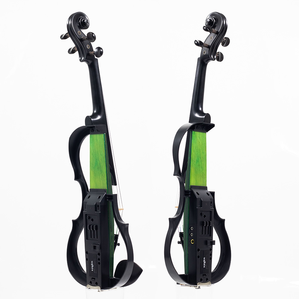 – O violino elétrico Kinglos é feito em uma mistura perfeita entre plástico ABS e madeira Maple, criando um visual apelativo, contrastante, mas harmonioso.