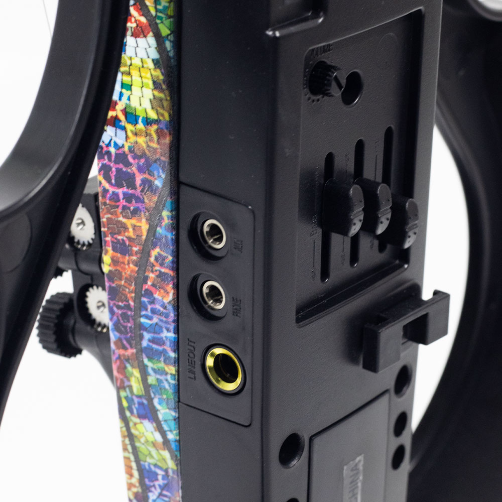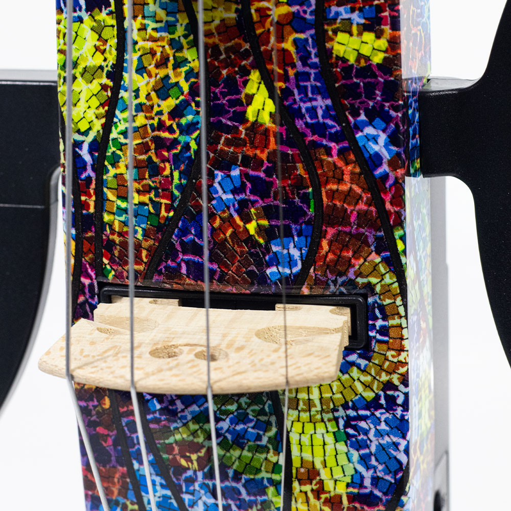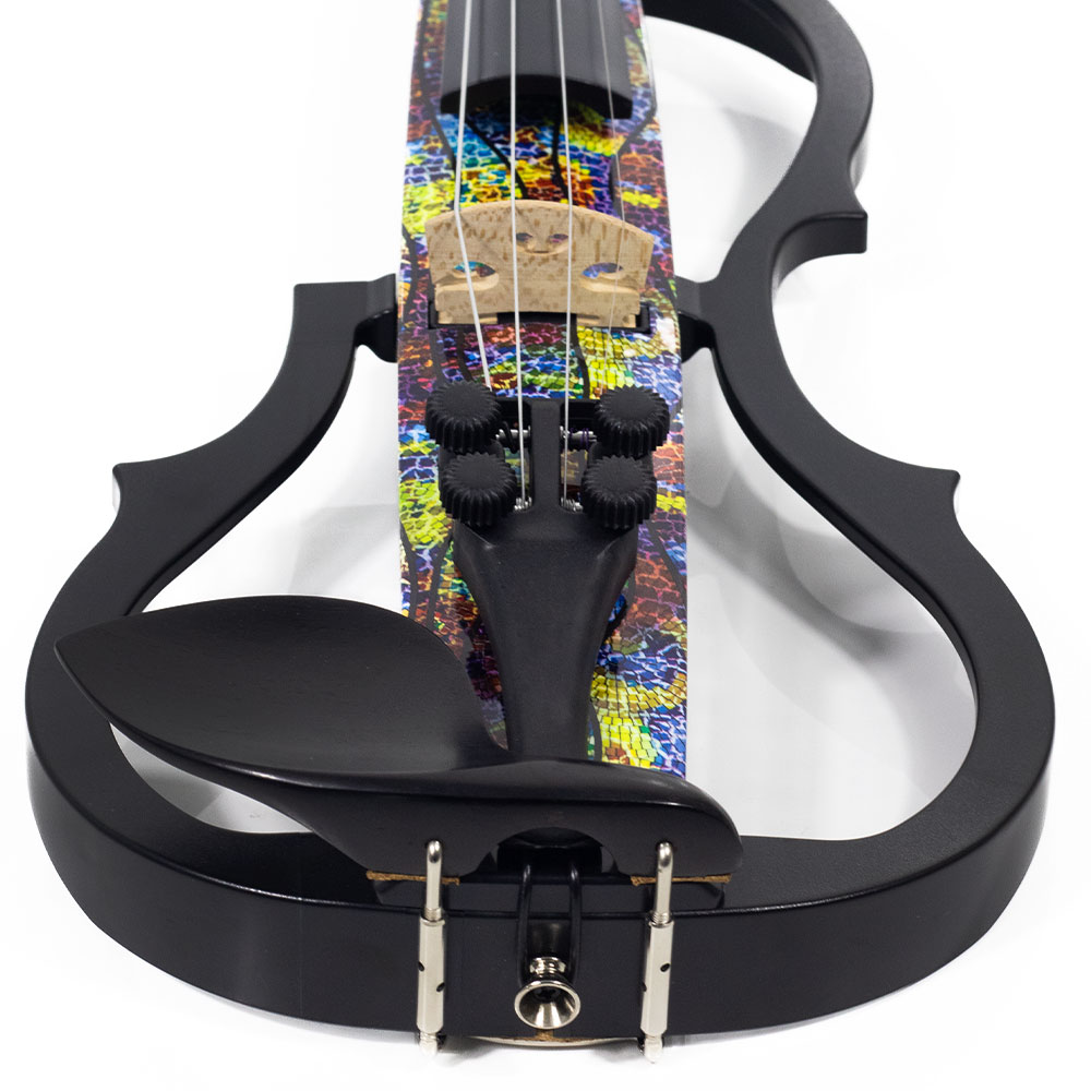 – O violino elétrico Kinglos é feito em uma mistura perfeita entre plástico ABS e madeira Maple, criando um visual apelativo, contrastante, mas harmonioso.
