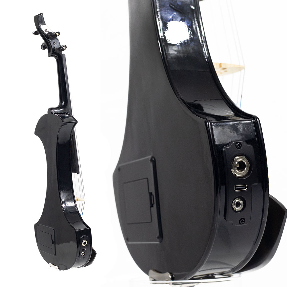– O violino é construído com um corpo de madeira compensada durável, complementado por uma escala e peças de ébano para uma tocabilidade suave e um timbre rico. O estandarte de fibra de carbono garante excelente durabilidade e estabilidade.